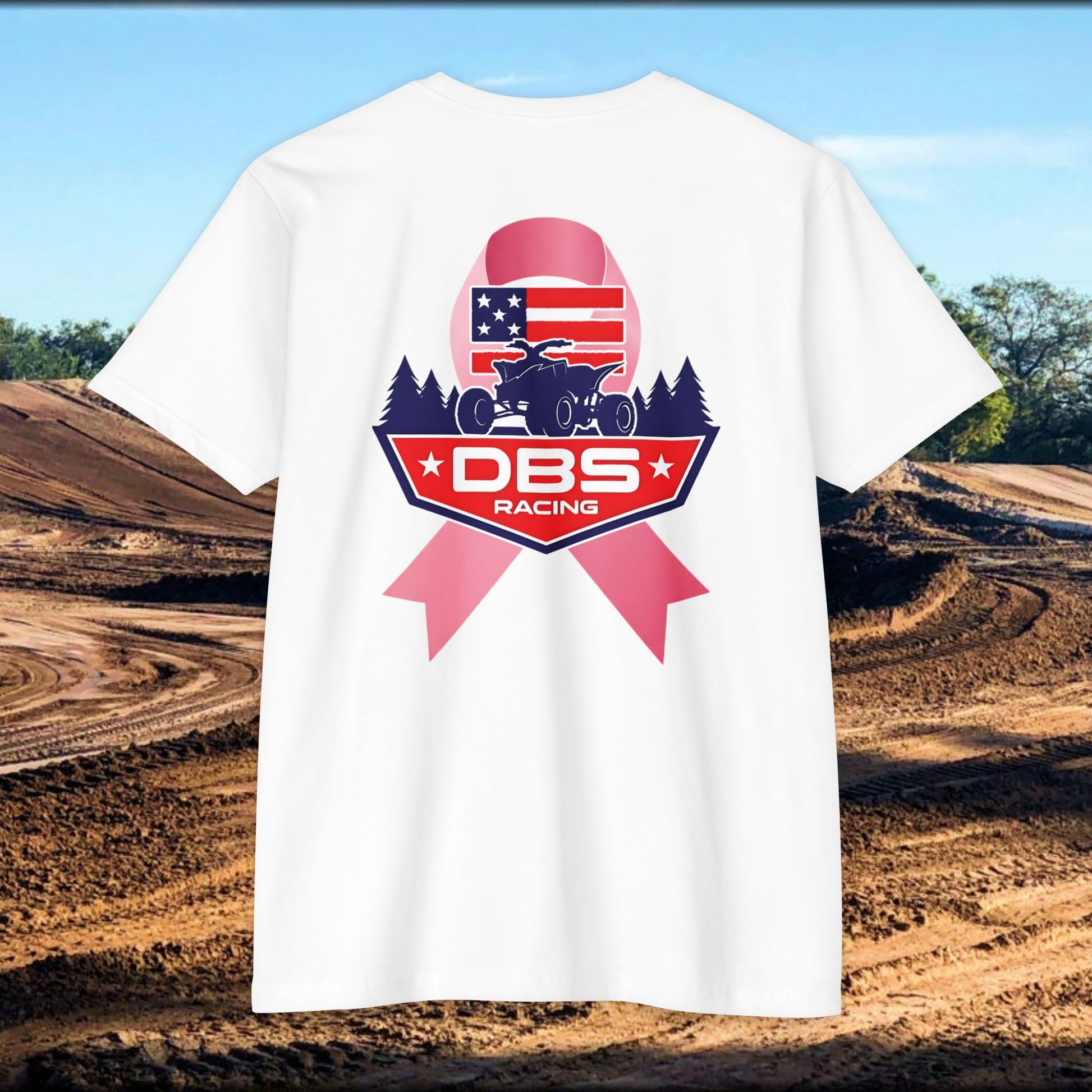 DBS Racing Breast Cancer Awareness Tee – Patriotic Off-Road Shirt for Race Fans, Outdoor Adventure & Support Gear