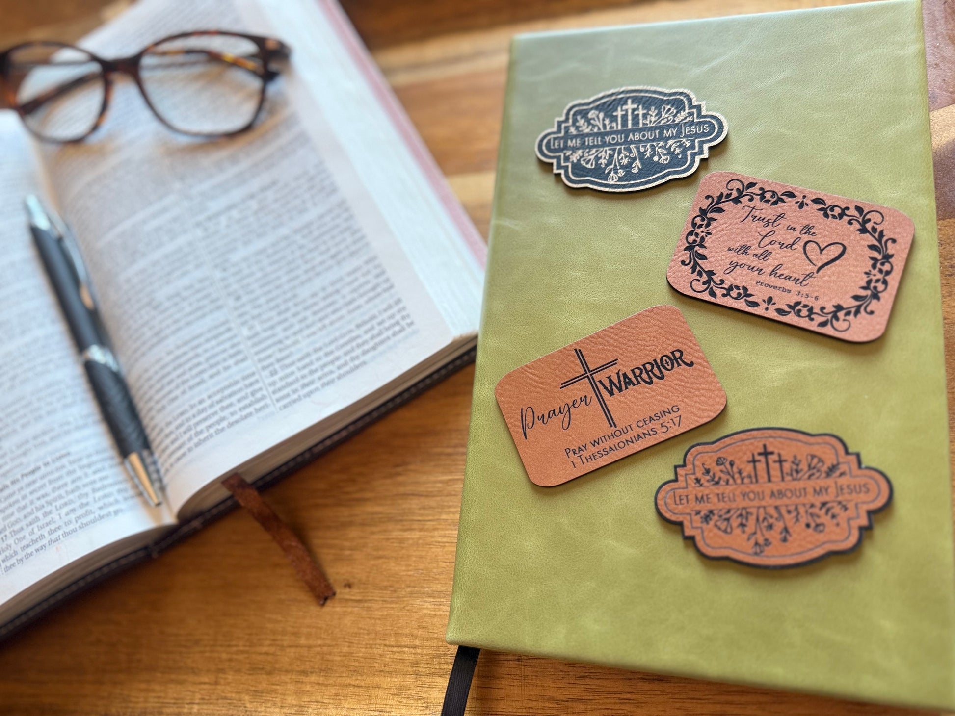 Faith-based pre-made patches Leather/Acrylic