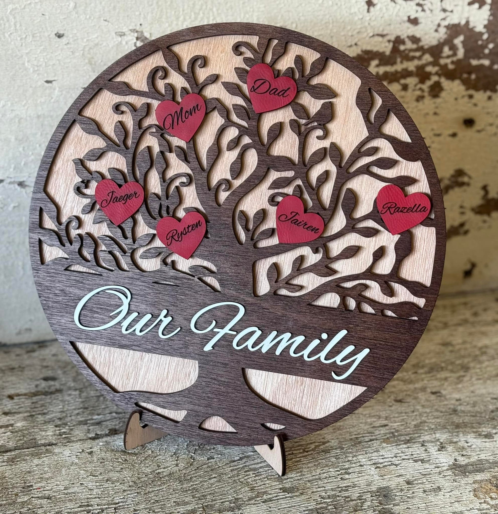 Surprise Mom this Mother’s Day with our Personalized Wooden, Acrylic, and Leather Family Tree—a heartfelt tribute to your family’s love! Featuring a beautifully crafted wooden tree with customizable leather hearts engraved with names like "Mom," "Dad," and the kids, it’s a unique keepsake she’ll treasure. The elegant design, complete with a sturdy stand, makes it a perfect centerpiece for any home. Order now to have it ready by May 11, 2025!