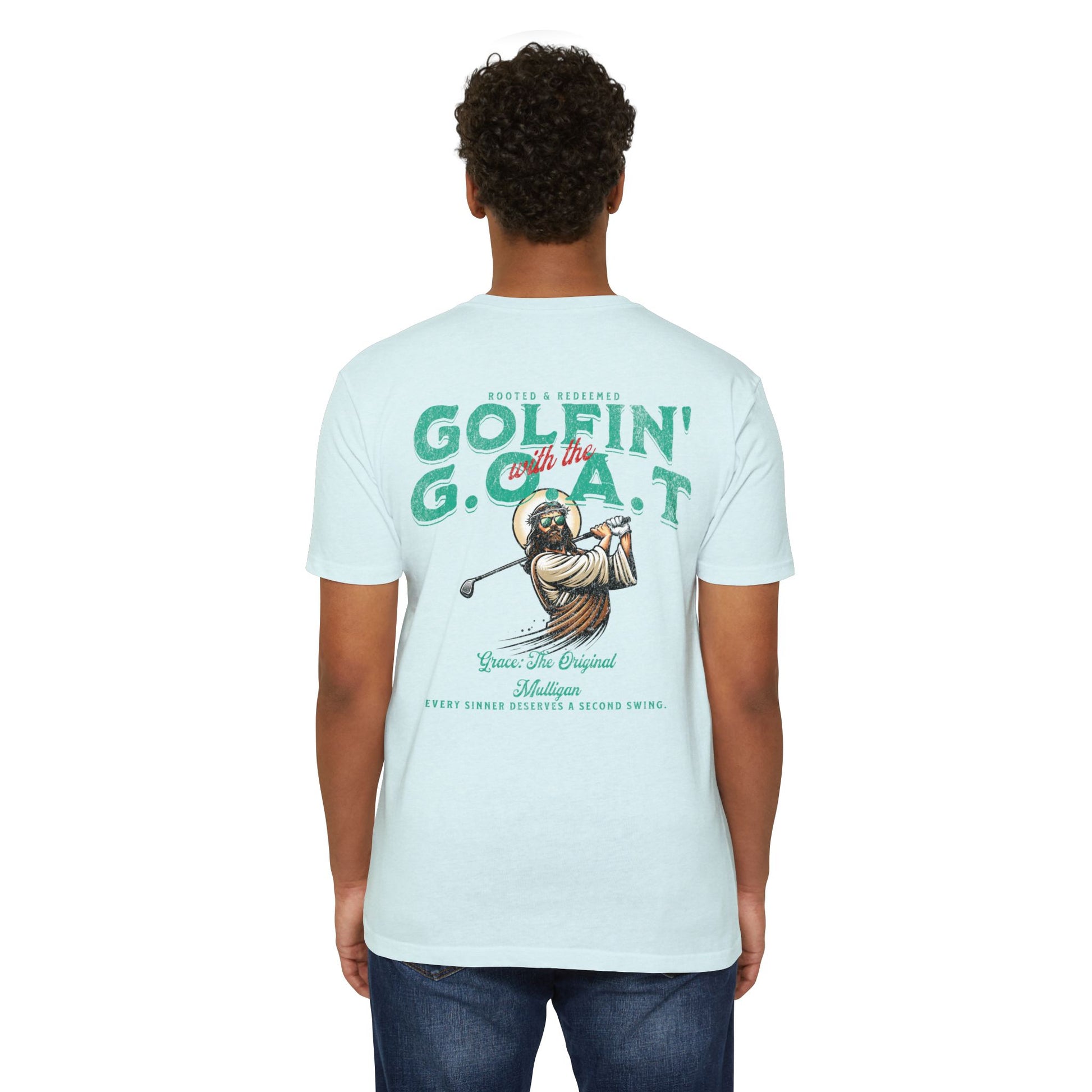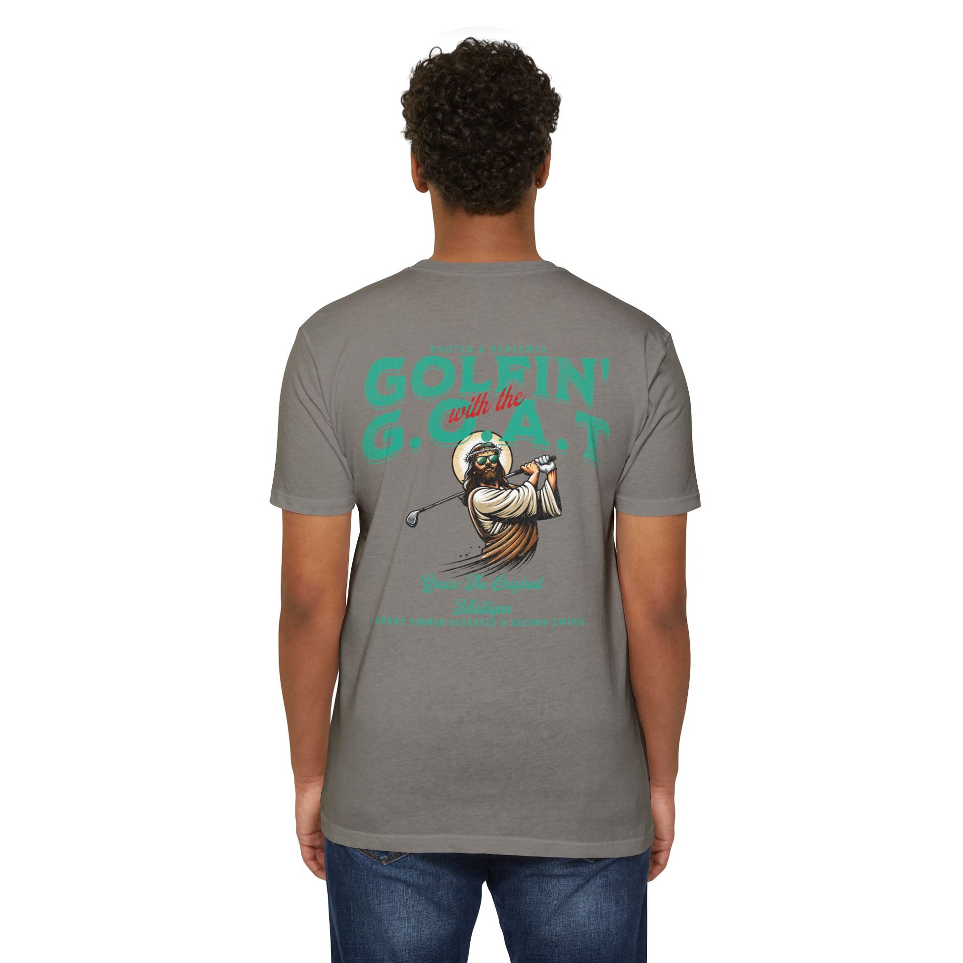 Golfin with the GOAT Tee Jesus Golf Shirt, Mulligan Grace Christian Tee