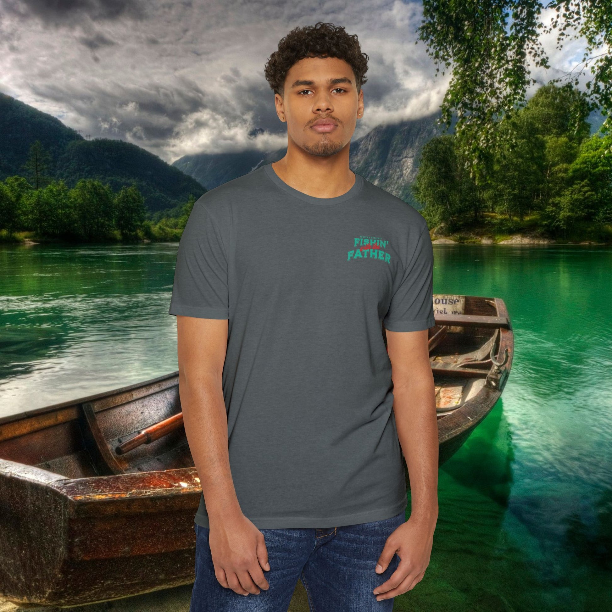 Printed on the Next Level 6210 premium fitted tee, it’s lightweight, soft, and built for all-day comfort whether you’re casting lines on the lake, grilling up the day’s catch, or just telling “the one that got away” stories at church.