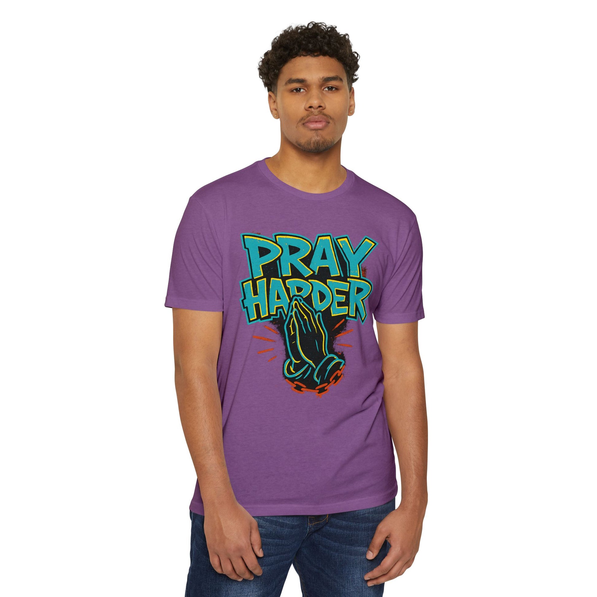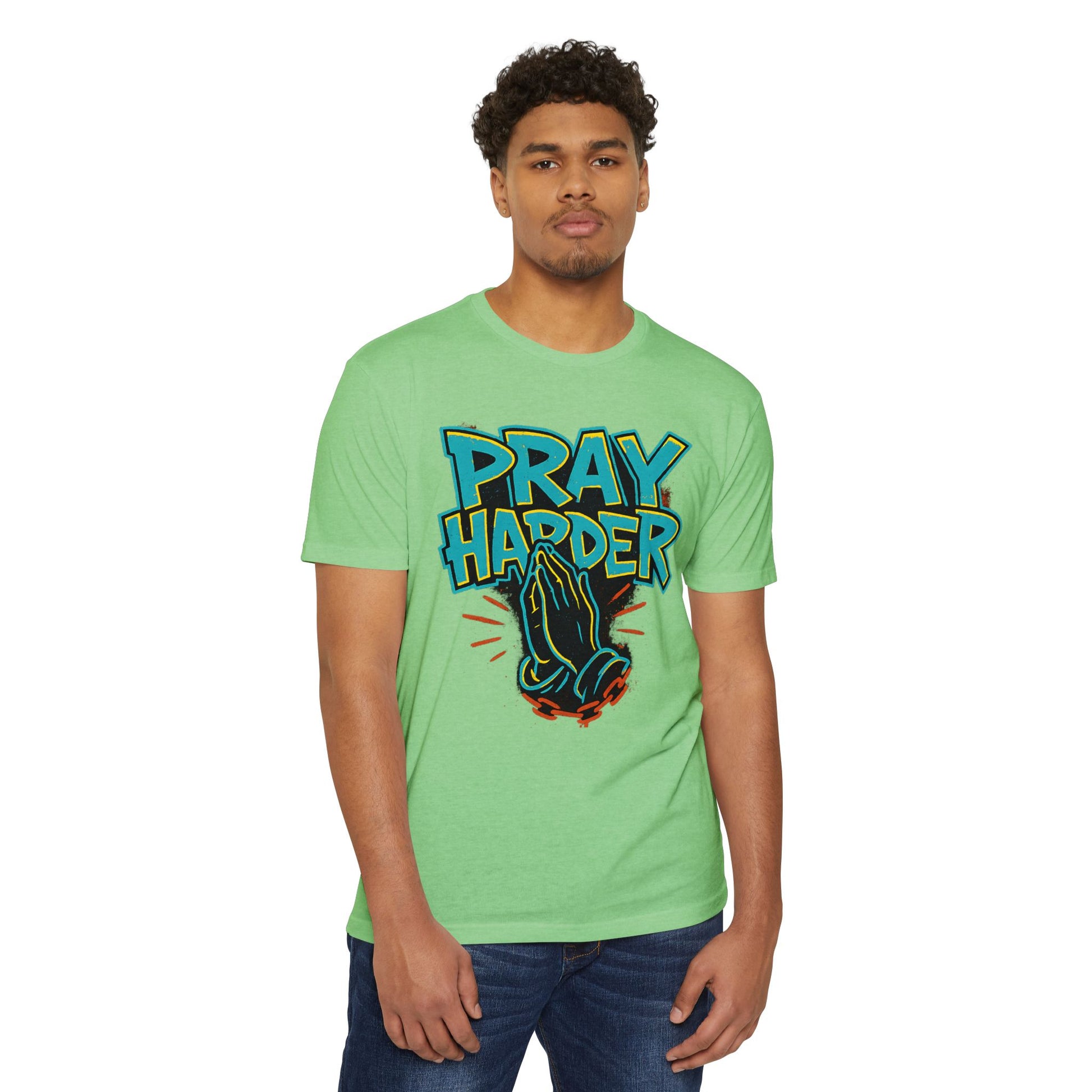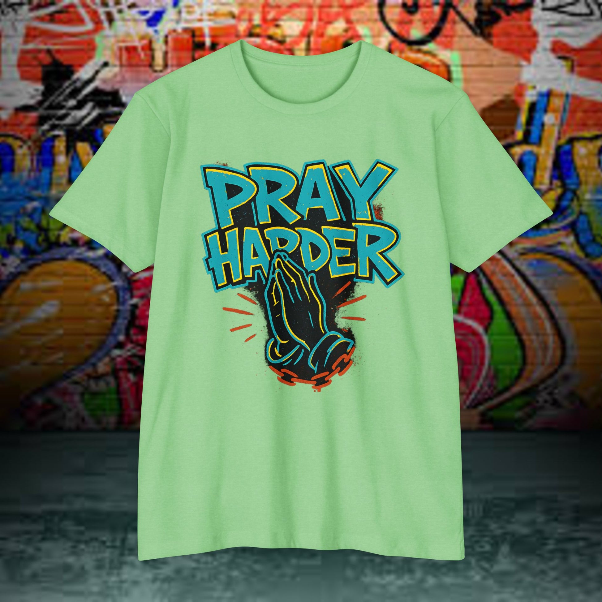 Faith meets streetwear in our “Pray Harder” graffiti hands tee, inspired by Matthew 5:44. Featuring bold, neon-outlined praying hands with spray-paint vibes, this design is a modern statement of power, prayer, and perseverance. Built to stand out, it blends edgy street art style with timeless biblical truth — perfect for youth, believers, and anyone ready to wear their faith loud.