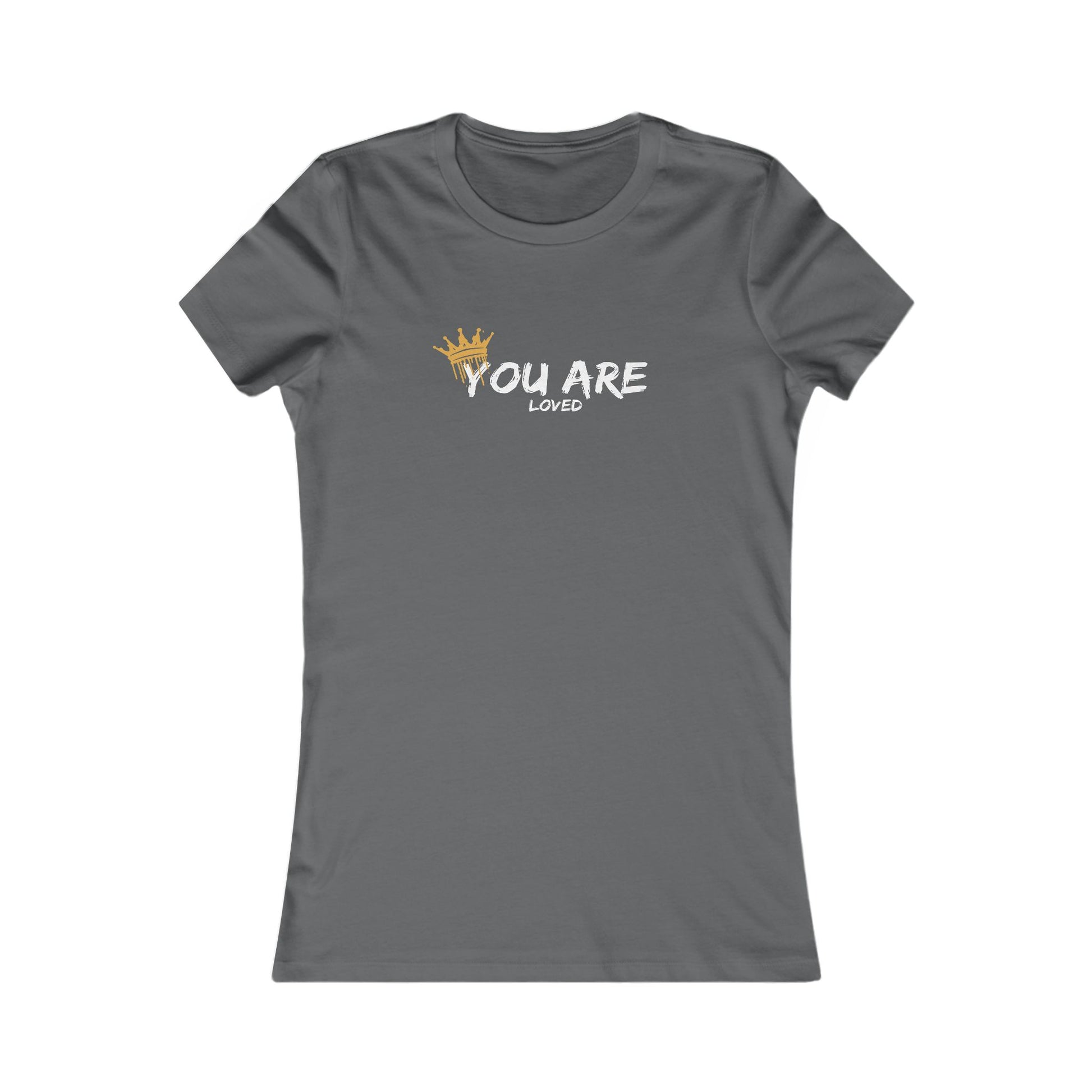 This striking image features bold white text on a black background proclaiming "YOU ARE LOVED" with a golden crown atop the word "YOU." The crown symbol adds a regal and empowering touch to the positive affirmation. The text is presented in a rough, brush-stroke style that gives it a handwritten and personal feel. The word "LOVED" is slightly smaller and positioned below the main text, emphasizing its importance. The contrast between the bright white letters and the dark background creates a visually impactful design. The golden crown is detailed with points and a base, dripping slightly as if freshly painted. This motivational artwork combines simplicity with a powerful message, making it ideal for social media sharing or as inspirational decor. The overall design conveys a sense of self-worth, reminding viewers of their inherent value and the love surrounding them. This image could be effective for mental health awareness, self-esteem campaigns, or as a thoughtful gift to uplift someone's spirits.