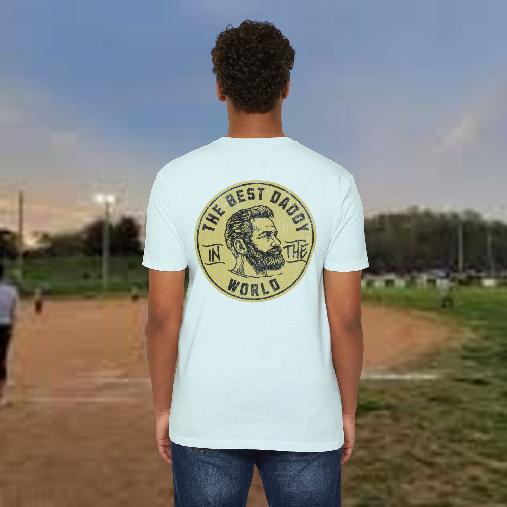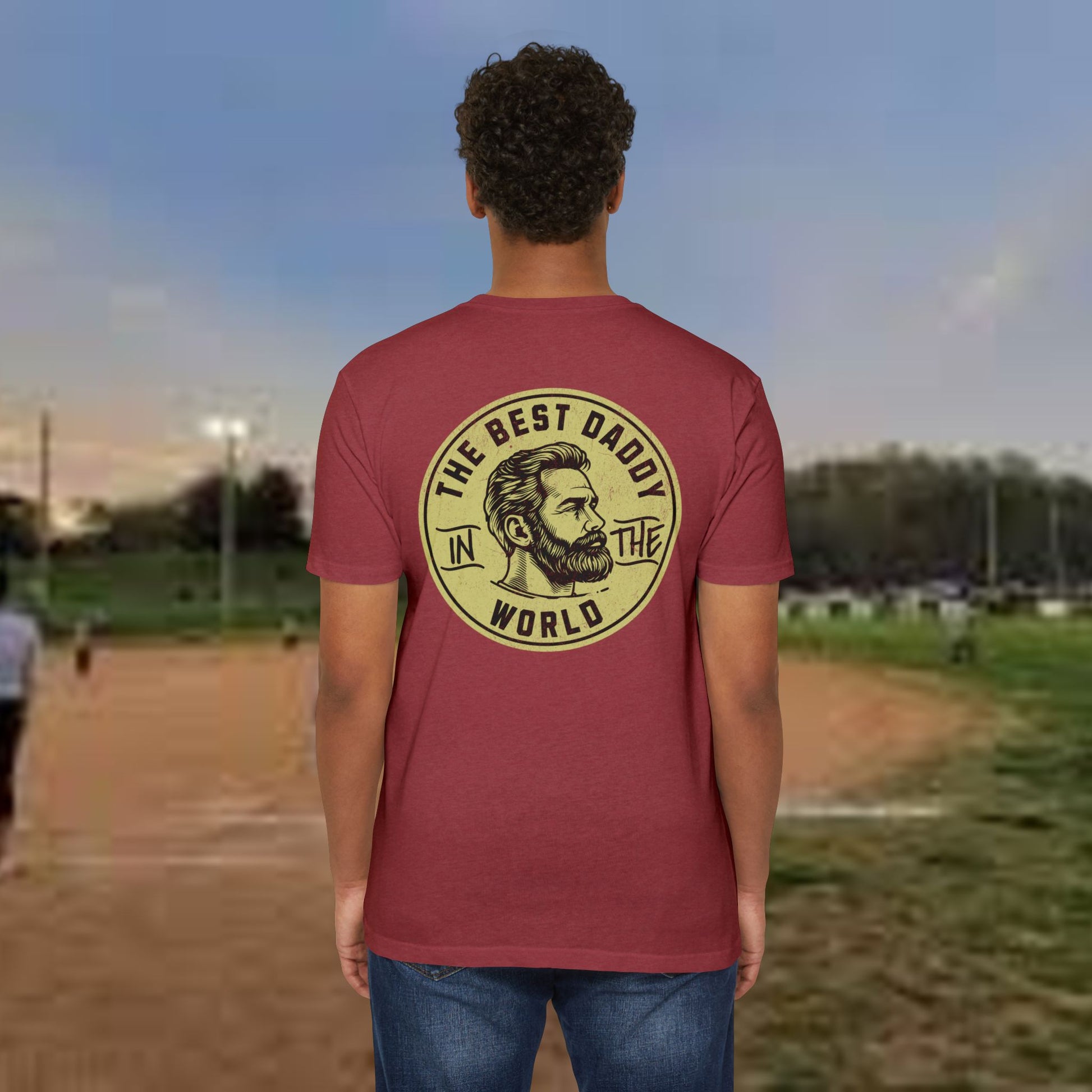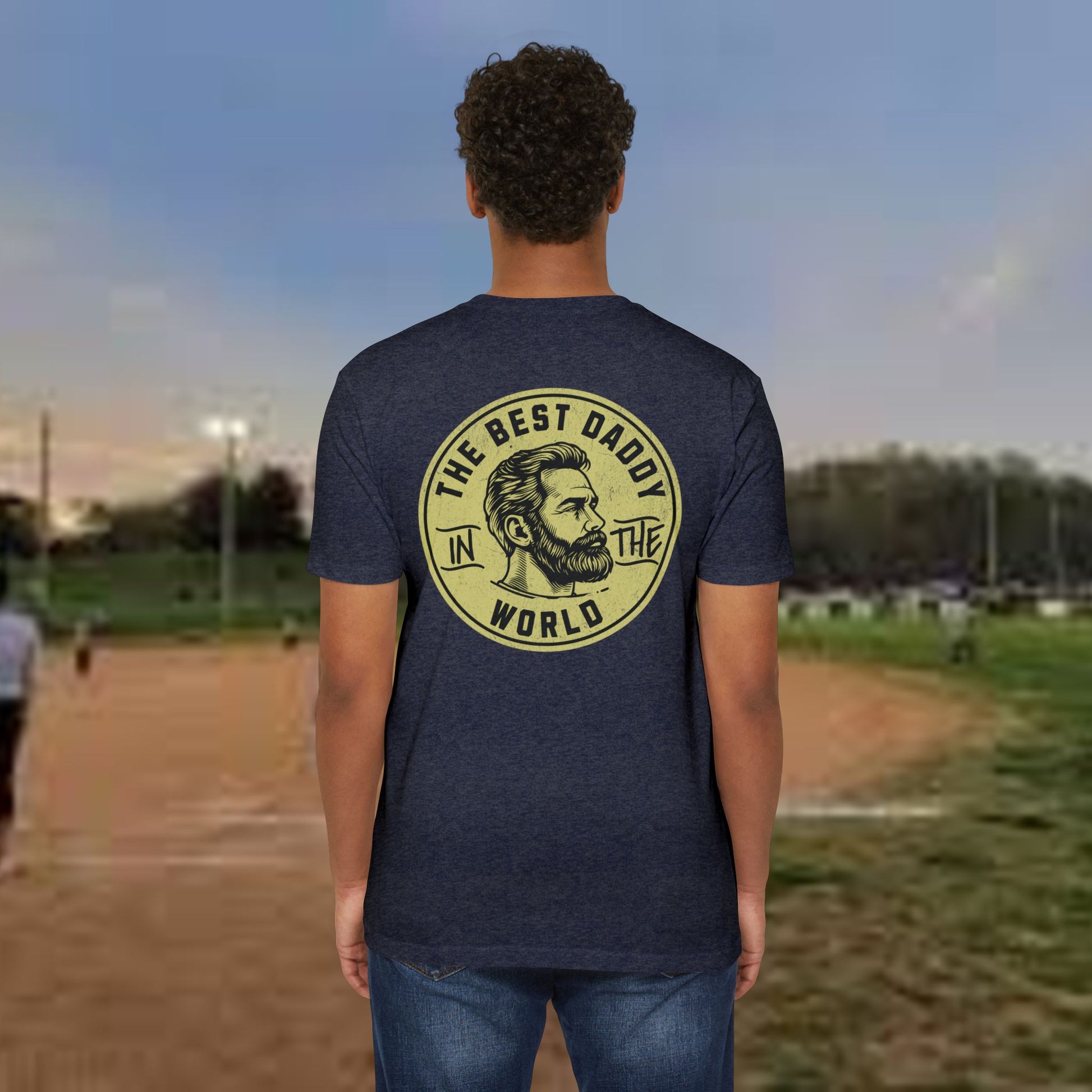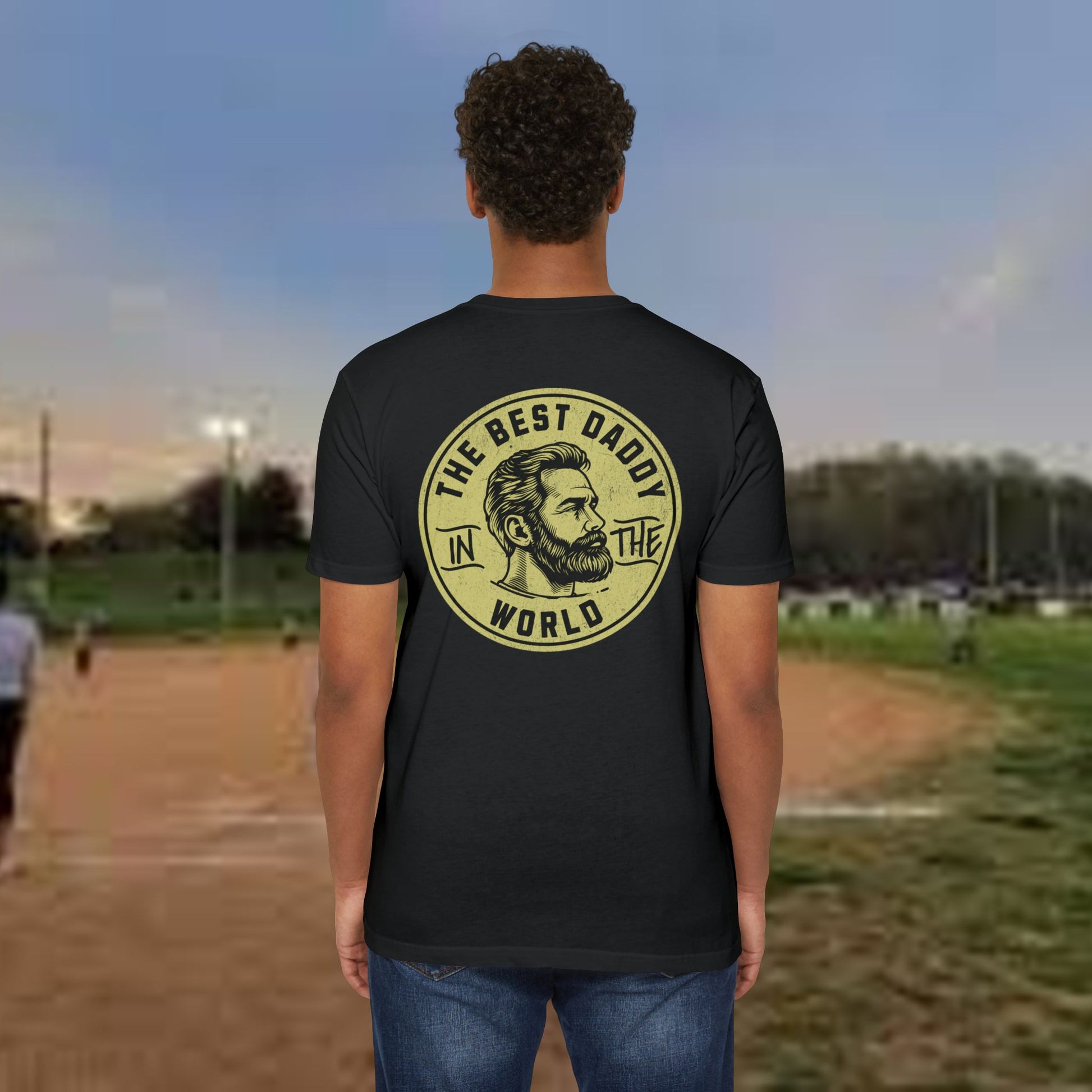 The classic distressed badge design features a bearded, rugged gentleman (just like dad), surrounded by the proud declaration: “The Best Daddy in the World.” Whether he's at the ball field, grilling, or just doing dad things, this shirt makes the perfect gift for Father’s Day, birthdays, or any day you want to show love and honor.