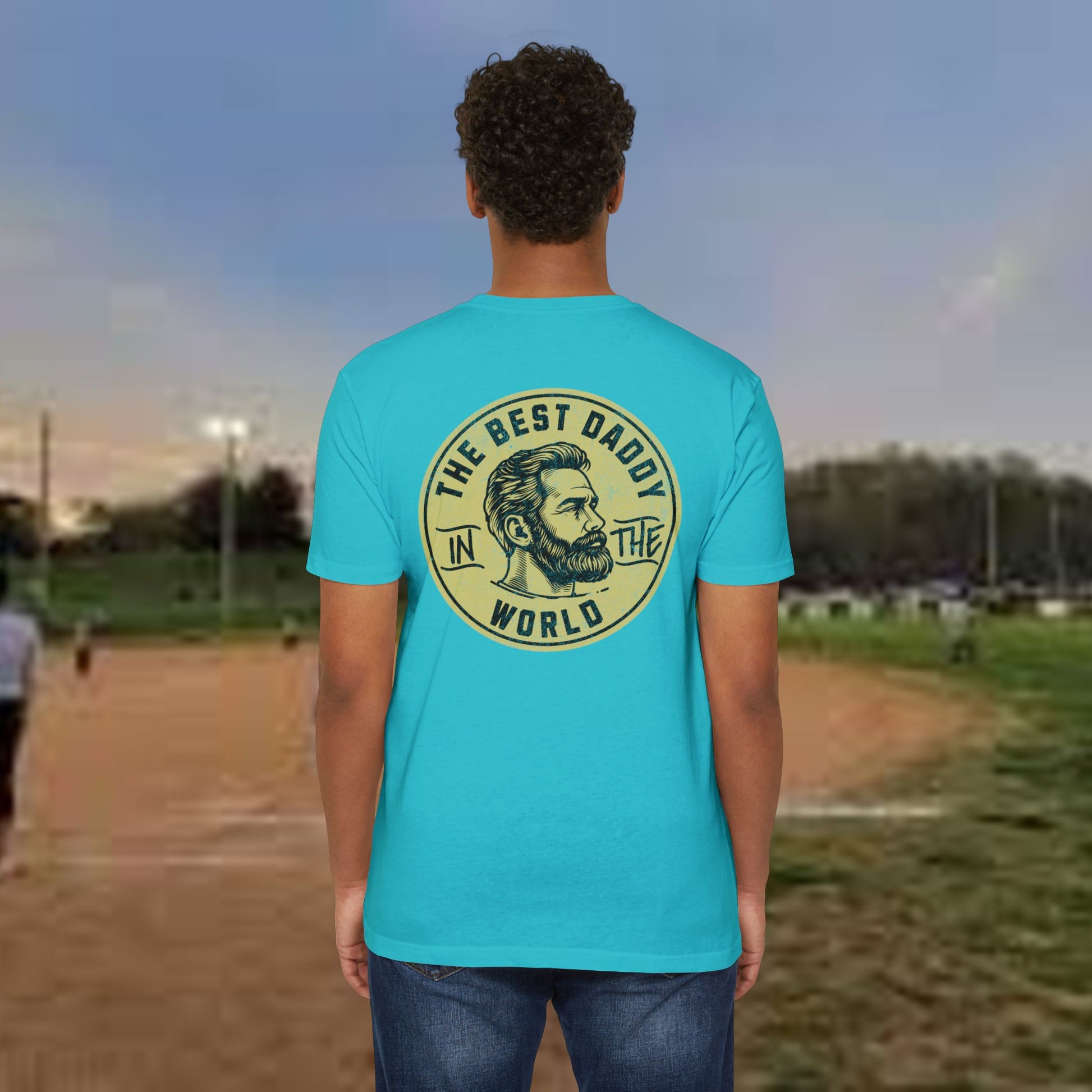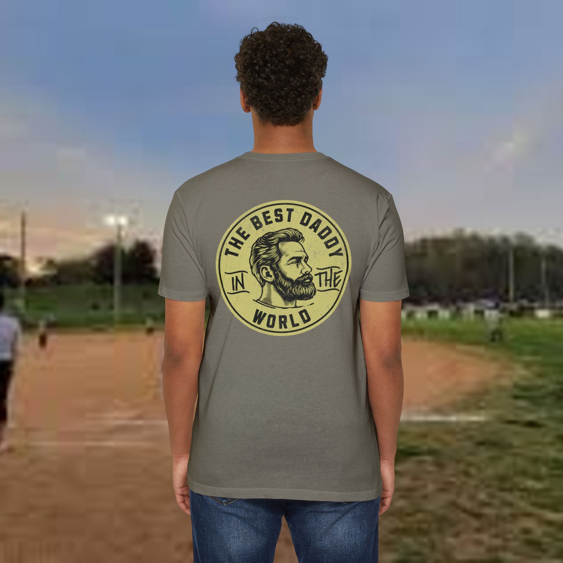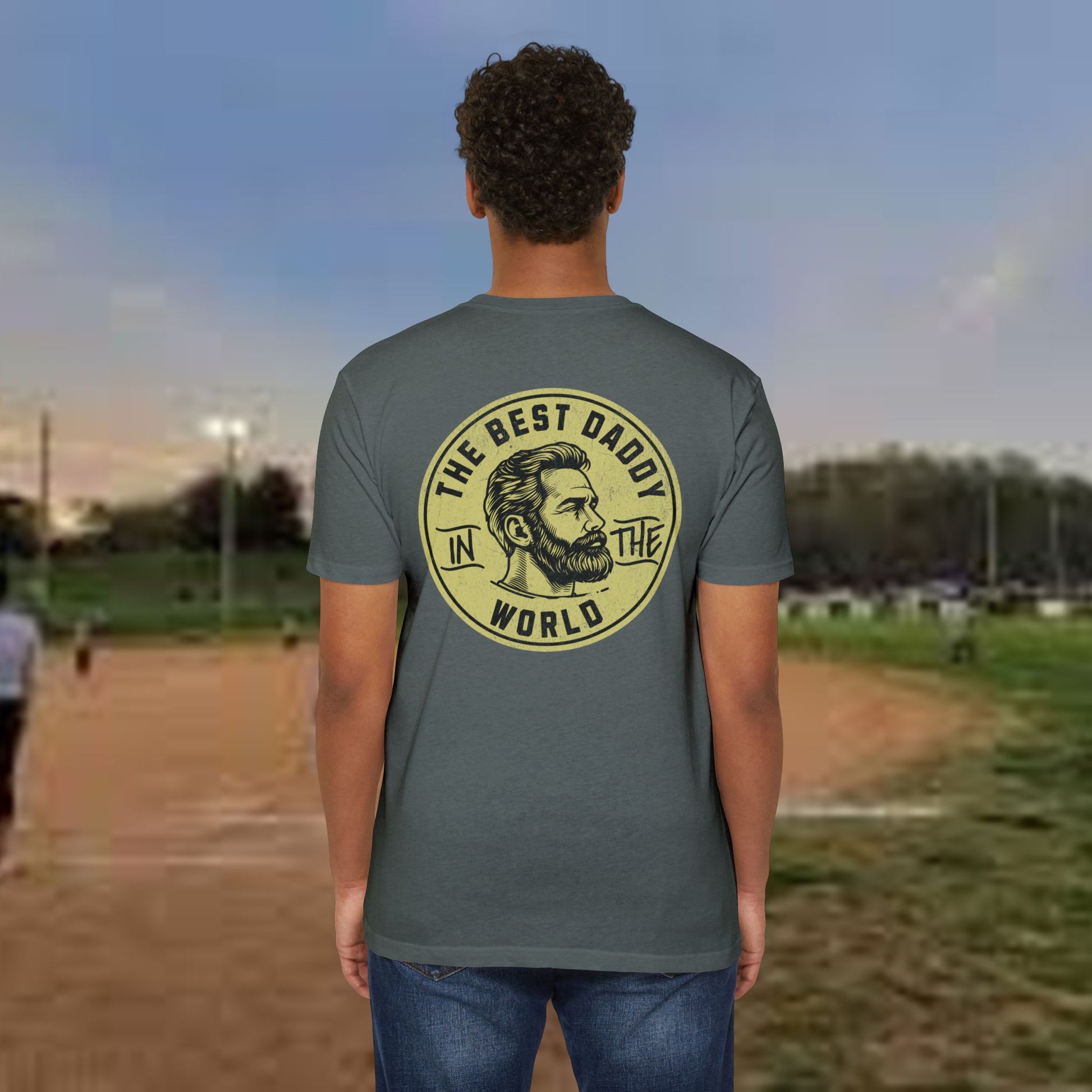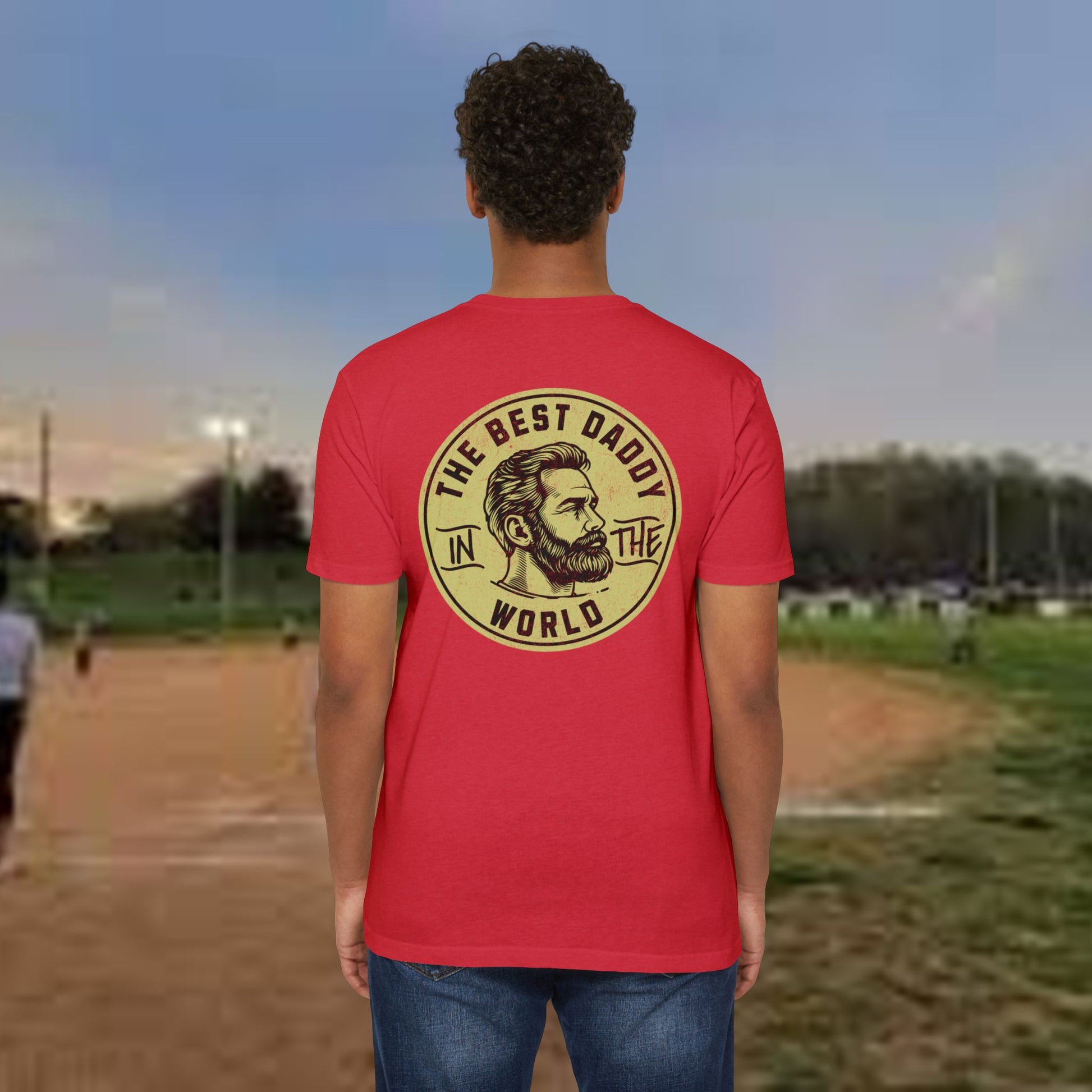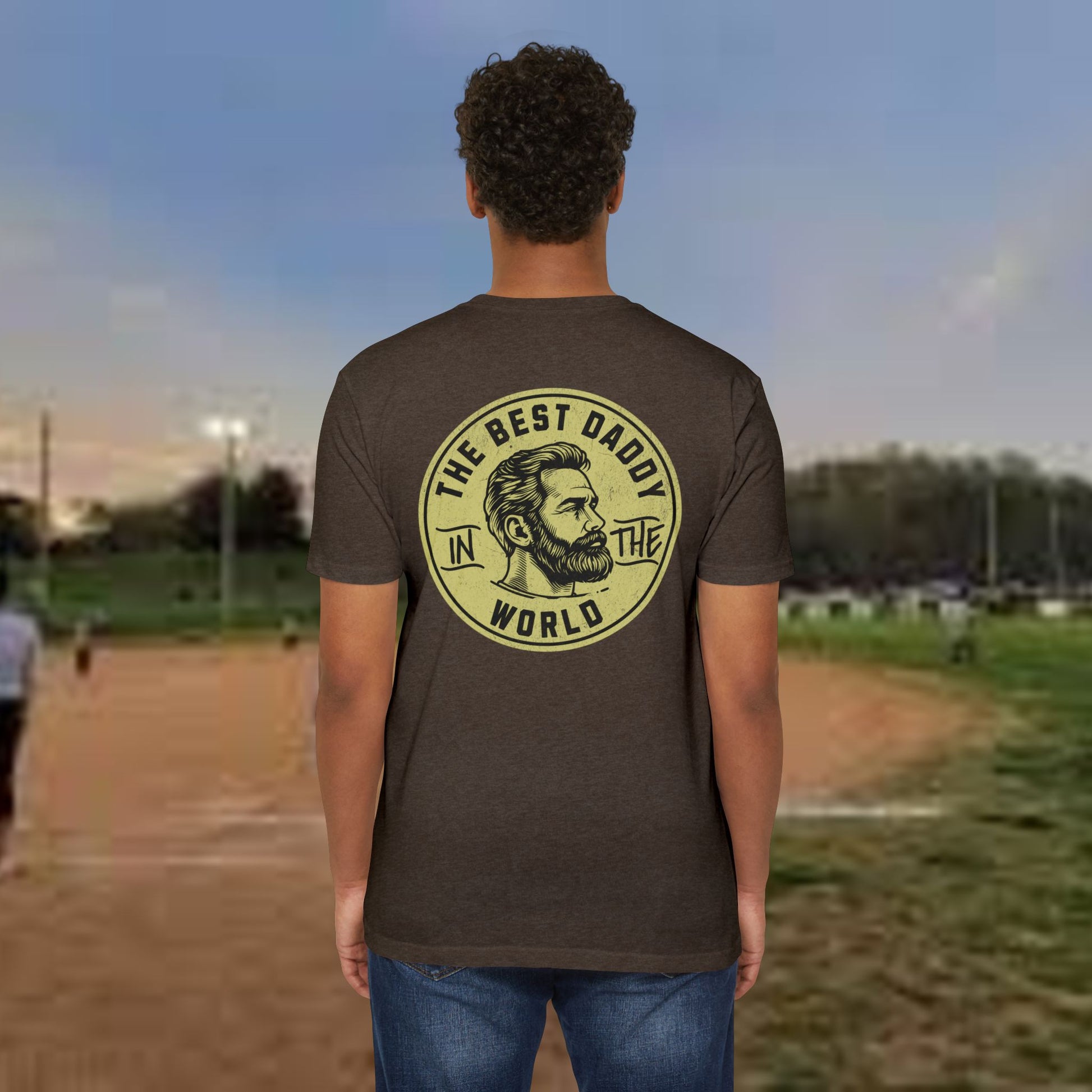 The classic distressed badge design features a bearded, rugged gentleman (just like dad), surrounded by the proud declaration: “The Best Daddy in the World.” Whether he's at the ball field, grilling, or just doing dad things, this shirt makes the perfect gift for Father’s Day, birthdays, or any day you want to show love and honor.